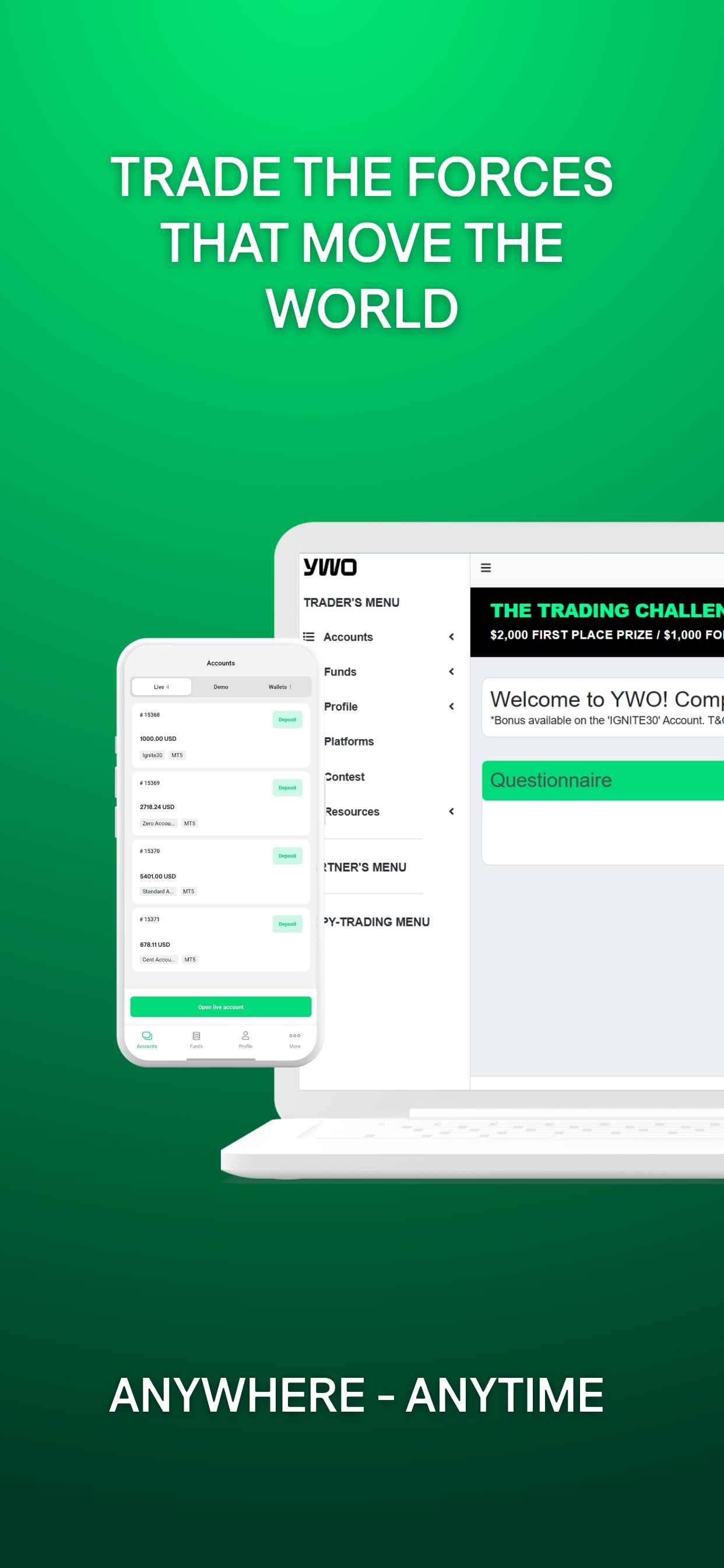 وقد قامت YWO ببناء بنيتها التحتية لضمان أن تكون أول تجربة للعميل في السوق مدعومة وآمنة وواضحة، مع التأكيد على أن التداول ينطوي على مخاطر وقد لا يكون مناسبًا لجميع الأفراد.